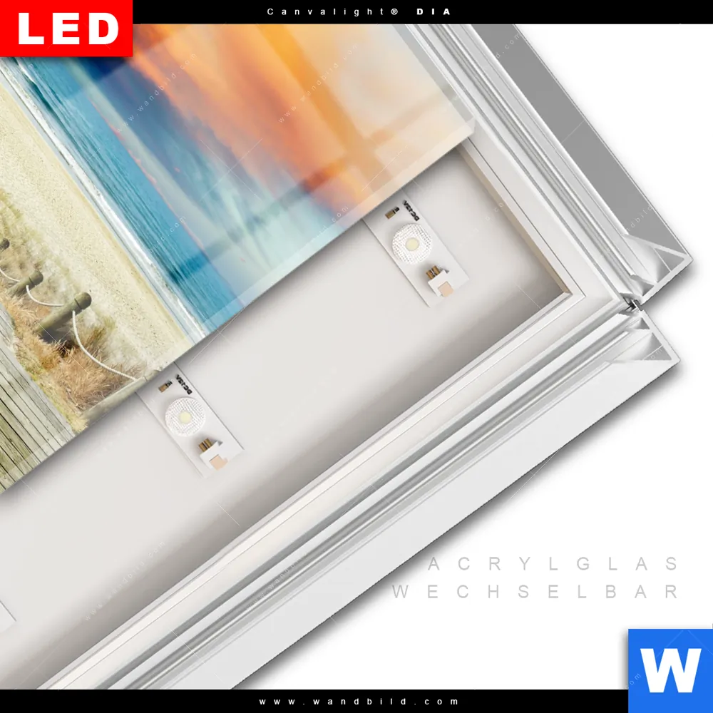 LED-Glasbild mit austauschbarem Acrylglas-Druck (Wechselbild)