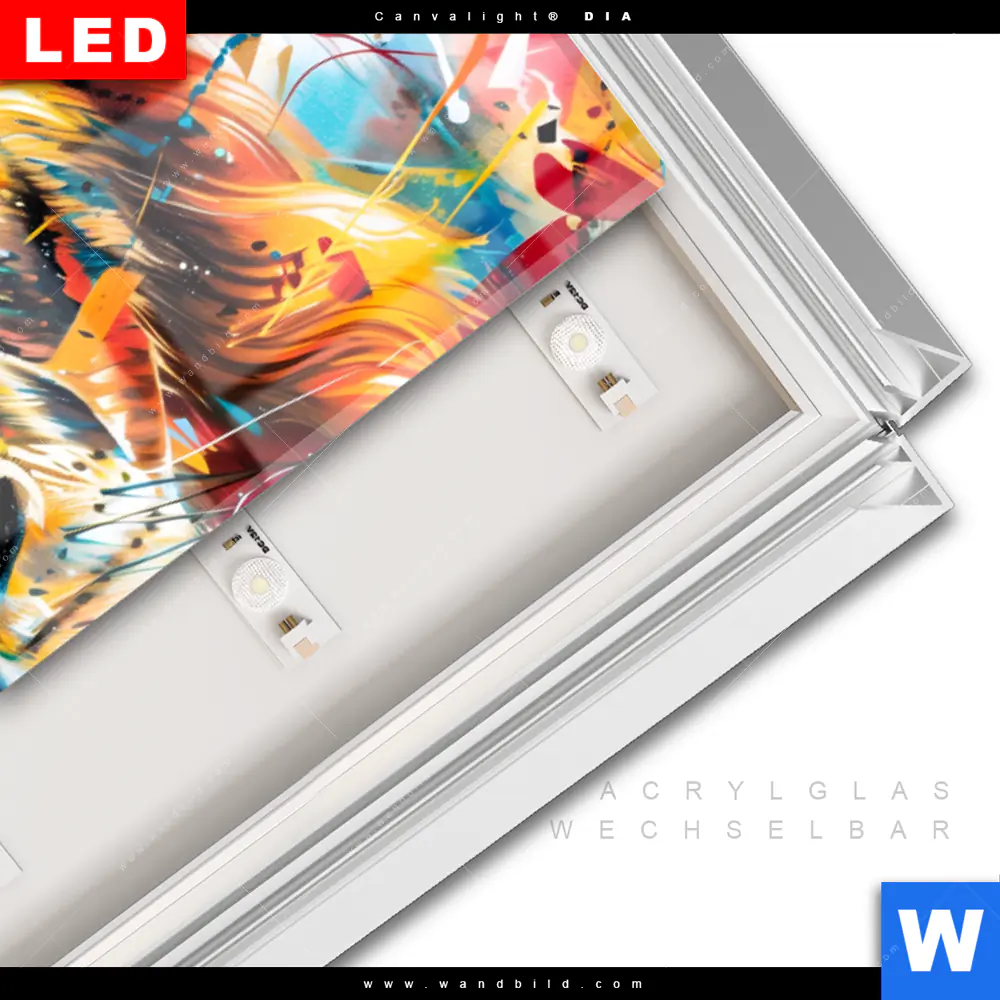 LED-Glasbild mit austauschbarem Acrylglas-Druck (Wechselbild)