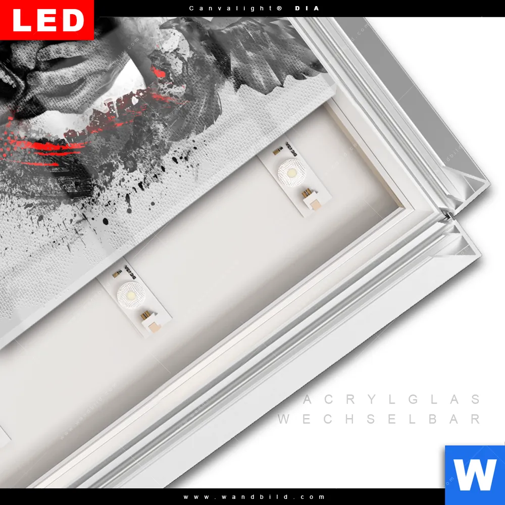 LED-Glasbild mit austauschbarem Acrylglas-Druck (Wechselbild)