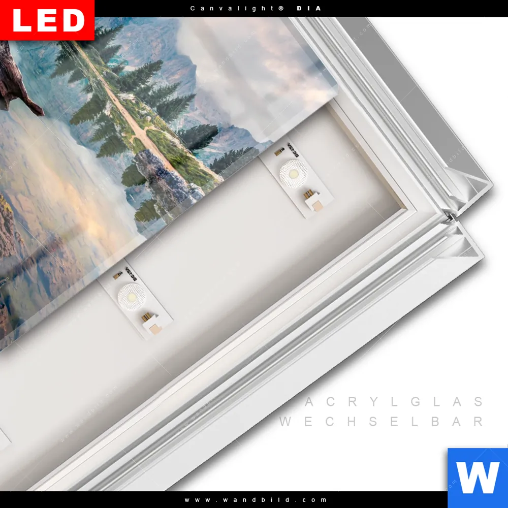 LED-Glasbild mit austauschbarem Acrylglas-Druck (Wechselbild)