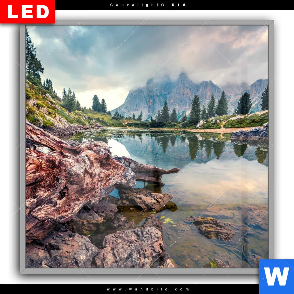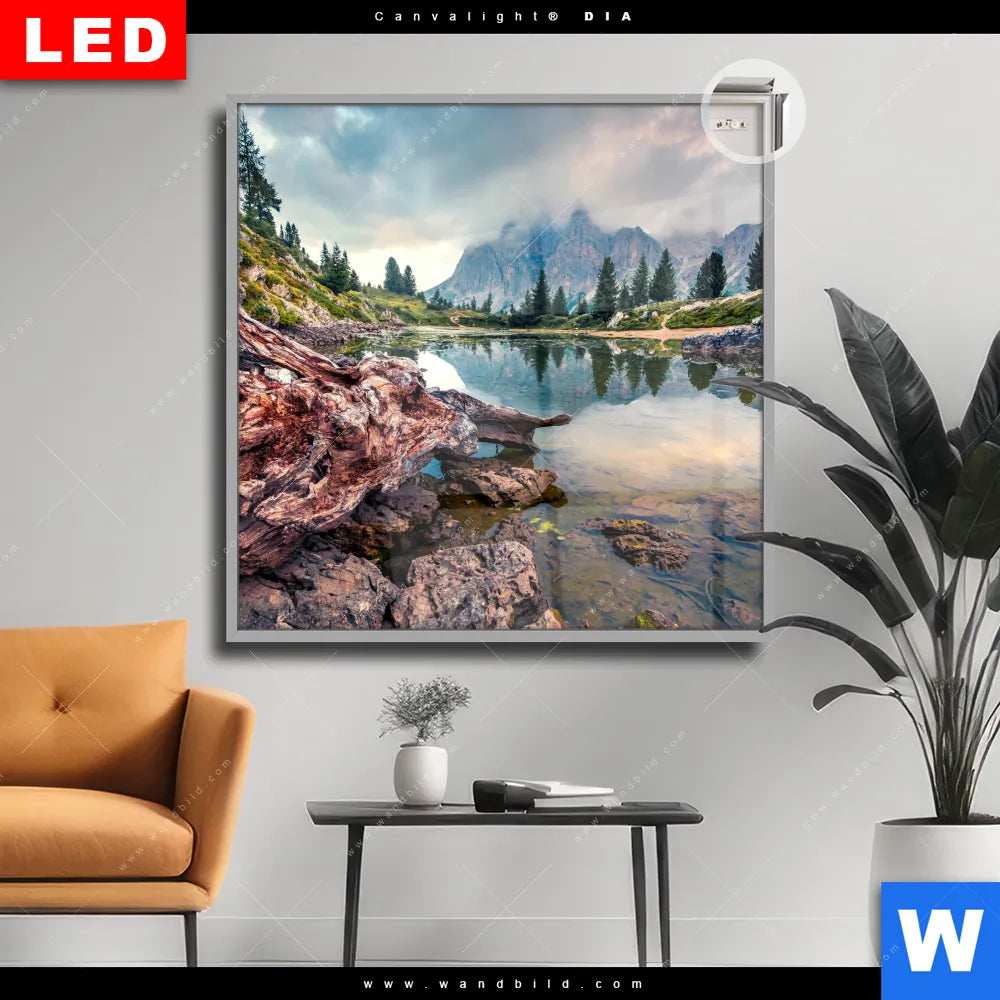 Canvalight® DIA Leuchtbild | Dramatischer Morgenblick am See | Quadrat