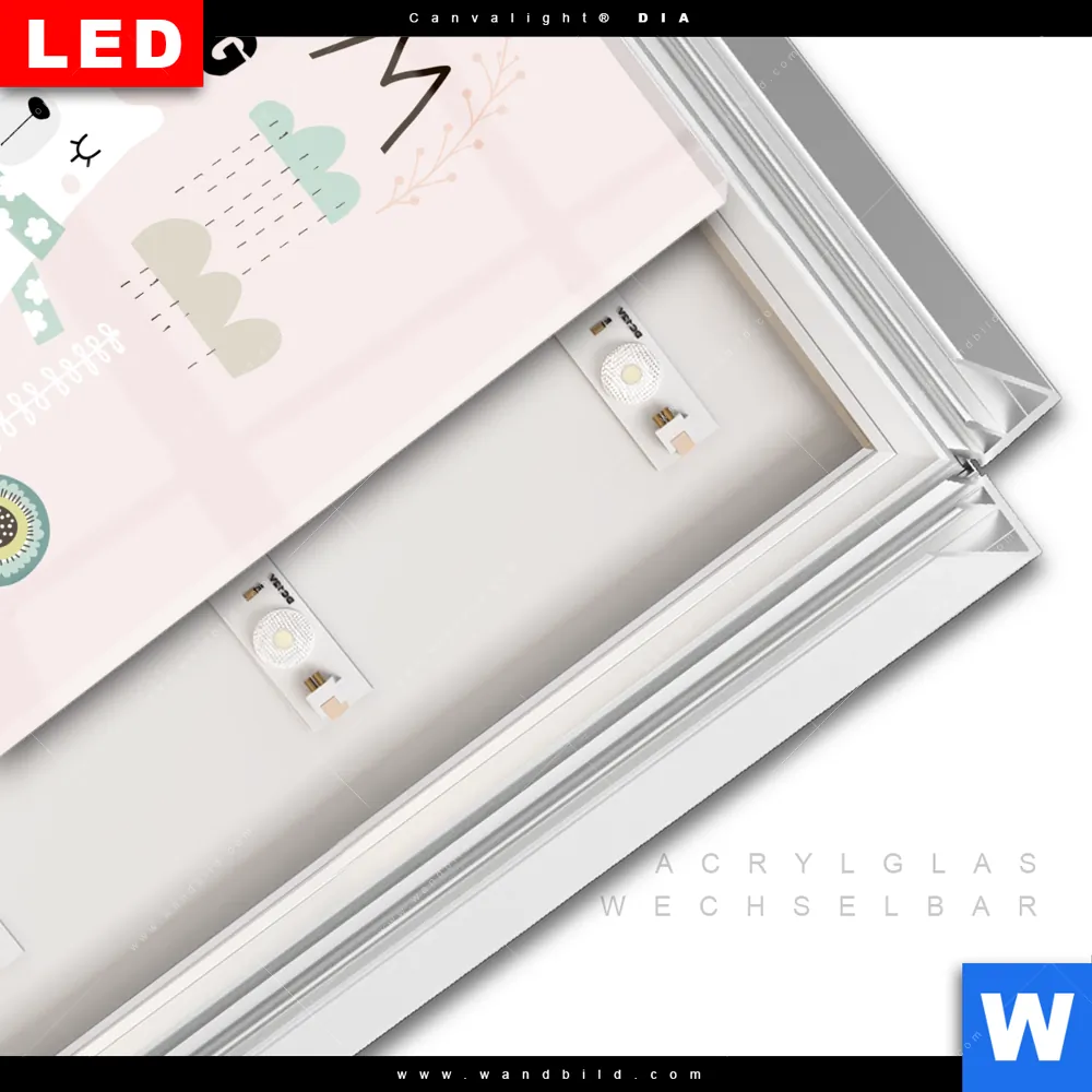 LED-Glasbild mit austauschbarem Acrylglas-Druck (Wechselbild)