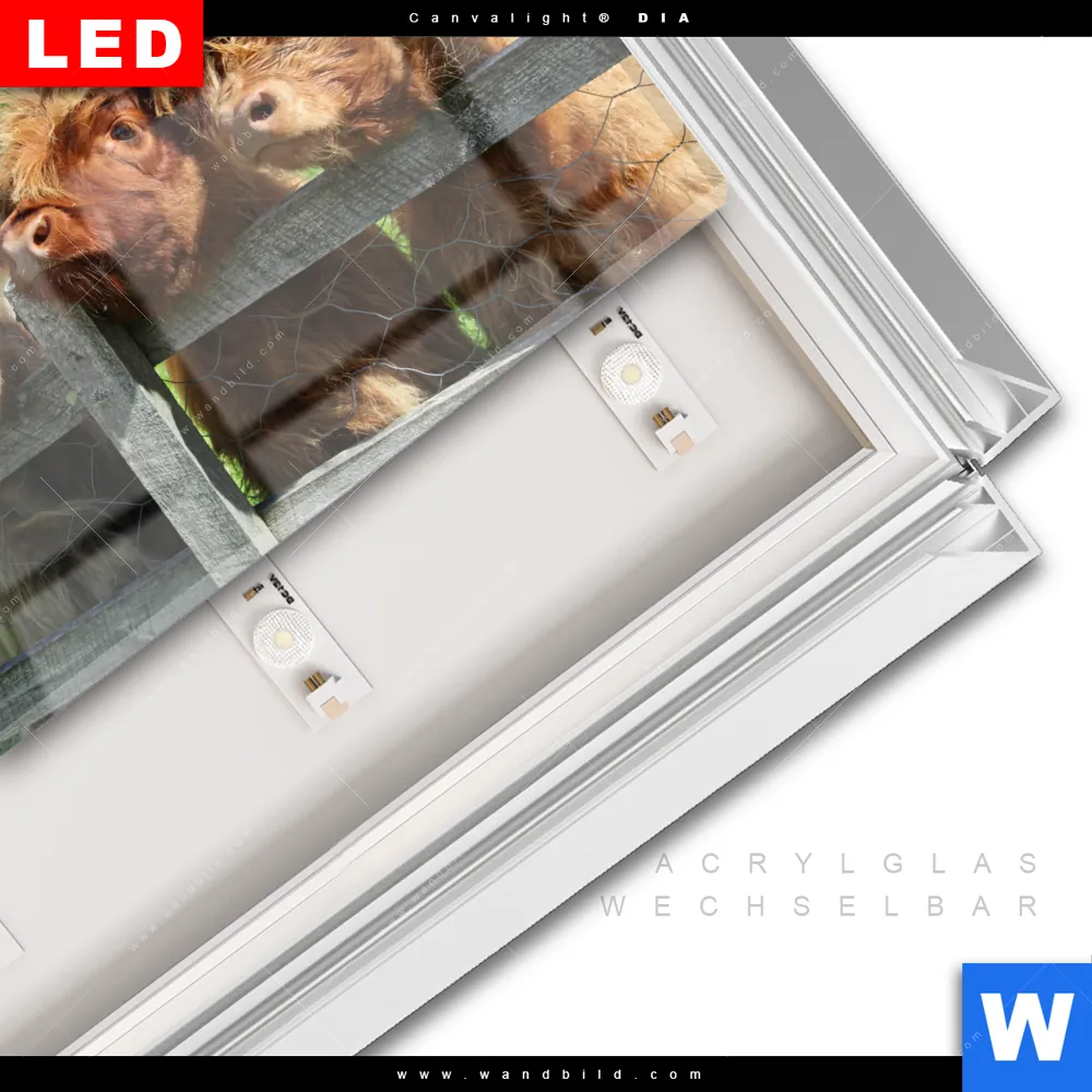 LED-Glasbild mit austauschbarem Acrylglas-Druck (Wechselbild)