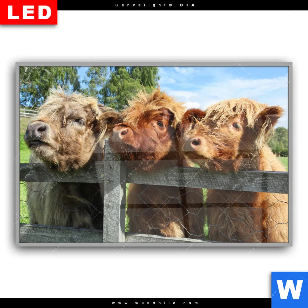Canvalight® DIA Leuchtbild | Drei Schottische Rinder | Querformat