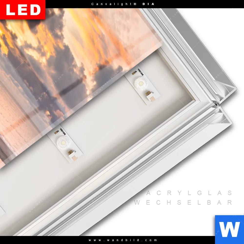 LED-Glasbild mit austauschbarem Acrylglas-Druck (Wechselbild)
