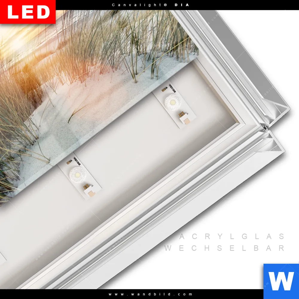 LED-Glasbild mit austauschbarem Acrylglas-Druck (Wechselbild)