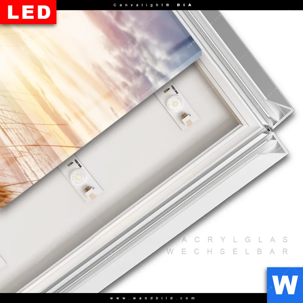 LED-Glasbild mit austauschbarem Acrylglas-Druck (Wechselbild)