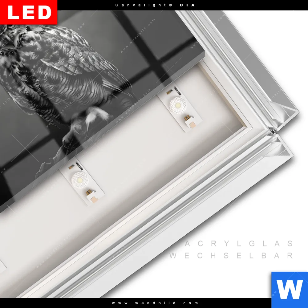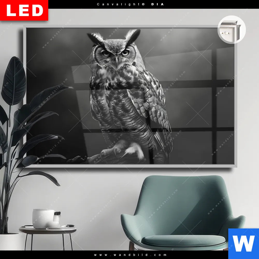 Canvalight® DIA Leuchtbild | Düstere Eleganz der Eule | Querformat