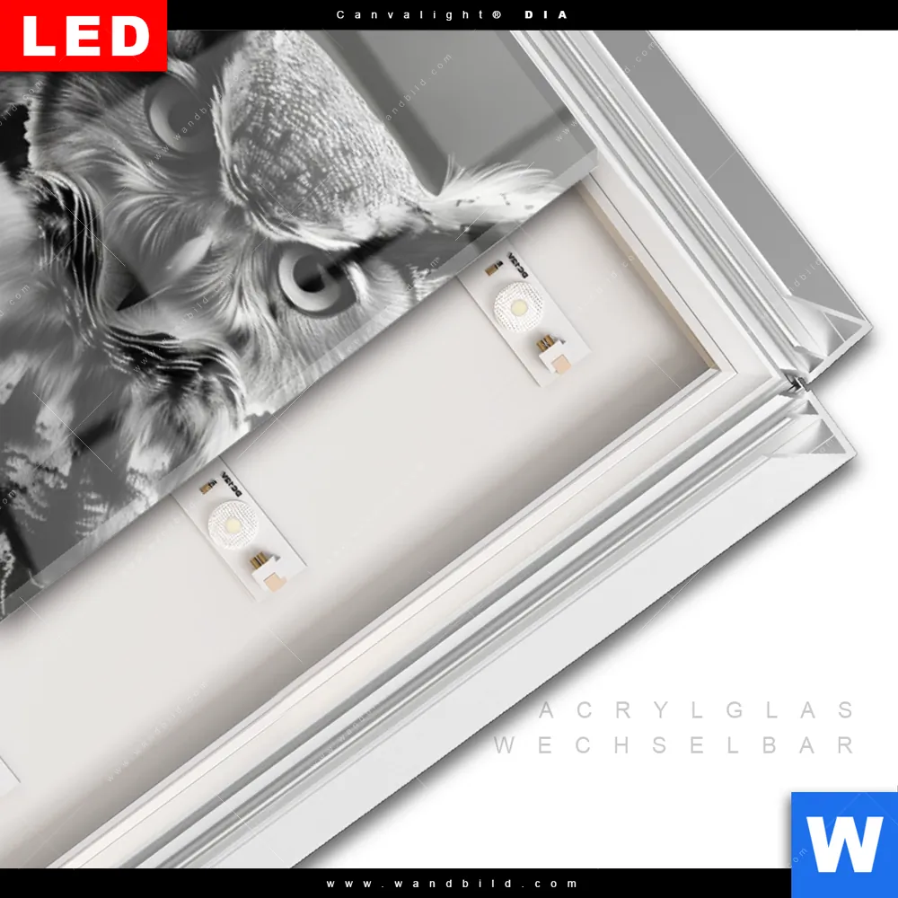 Canvalight® DIA Leuchtbild | Düstere Eleganz der Eule | Schmal