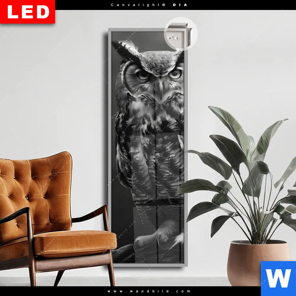 Leuchtbild Acrylglas Canvalight® DIA | Düstere Eleganz der Eule | Schmal