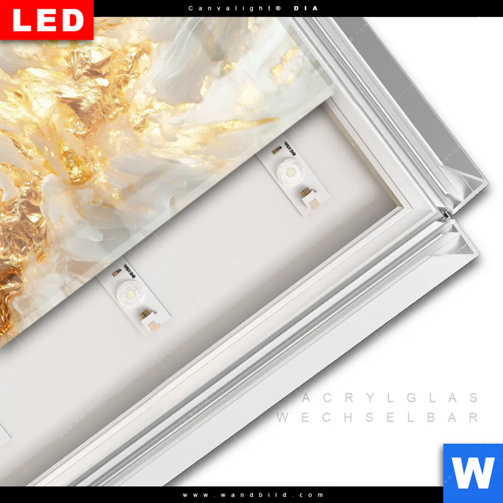 LED-Glasbild mit austauschbarem Acrylglas-Druck (Wechselbild)