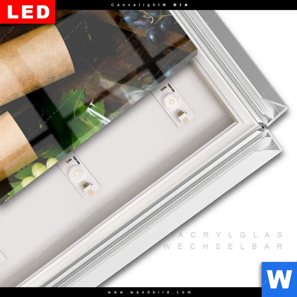 LED-Glasbild mit austauschbarem Acrylglas-Druck (Wechselbild)