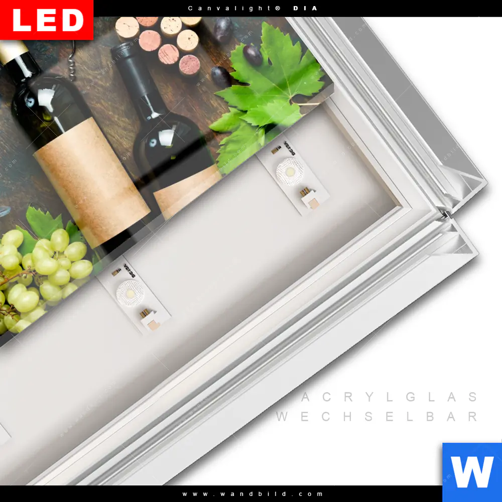LED-Glasbild mit austauschbarem Acrylglas-Druck (Wechselbild)