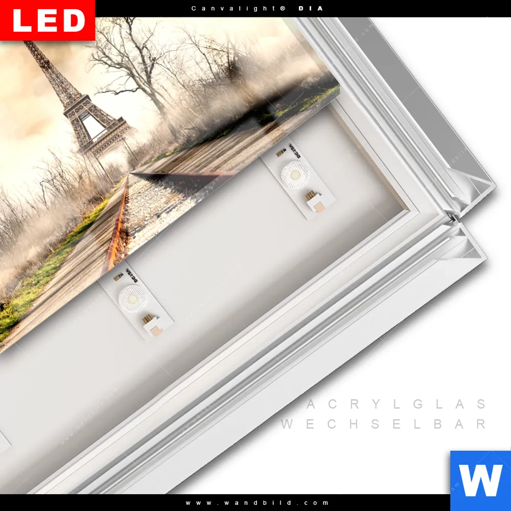 LED-Glasbild mit austauschbarem Acrylglas-Druck (Wechselbild)