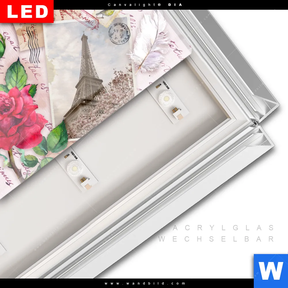 Canvalight® DIA Leuchtbild | Eifelturm & Rosen | Quadrat