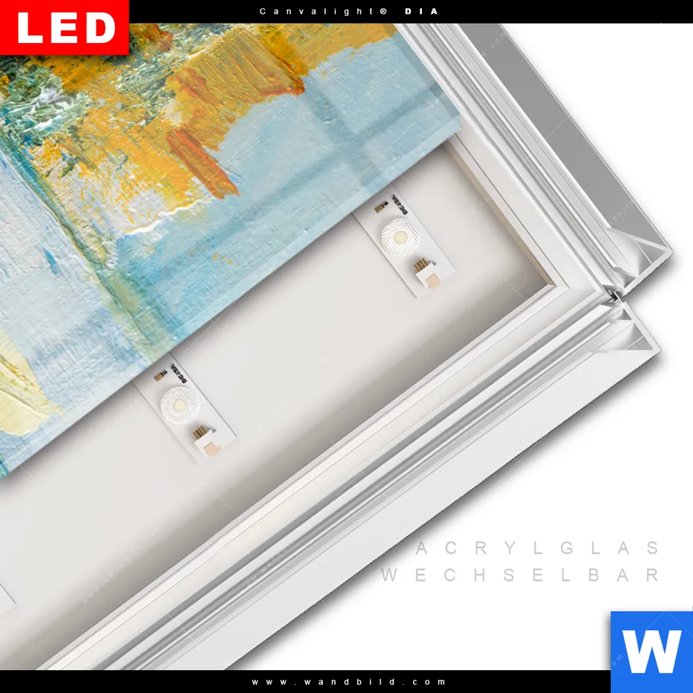 LED-Glasbild mit austauschbarem Acrylglas-Druck (Wechselbild)