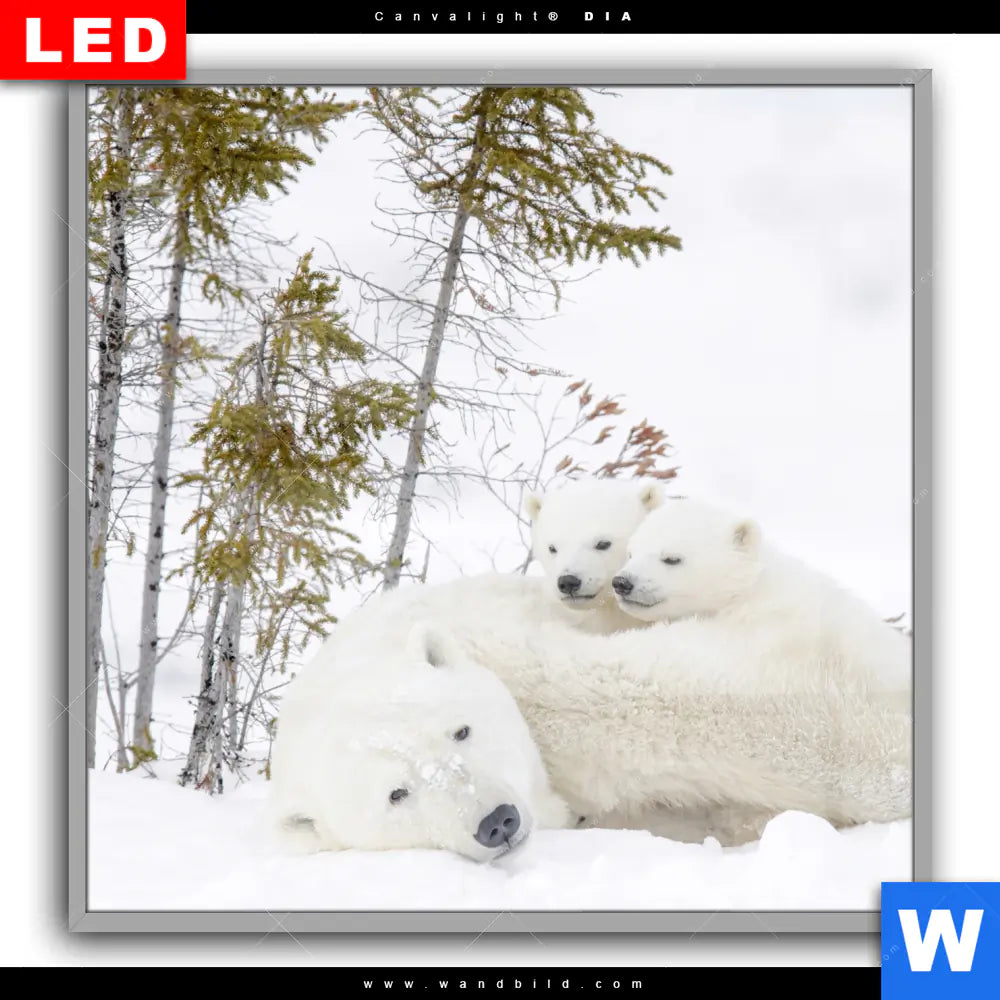Canvalight® DIA Leuchtbild | Eisbärenfamilie in winterlicher Landschaft | Quadrat