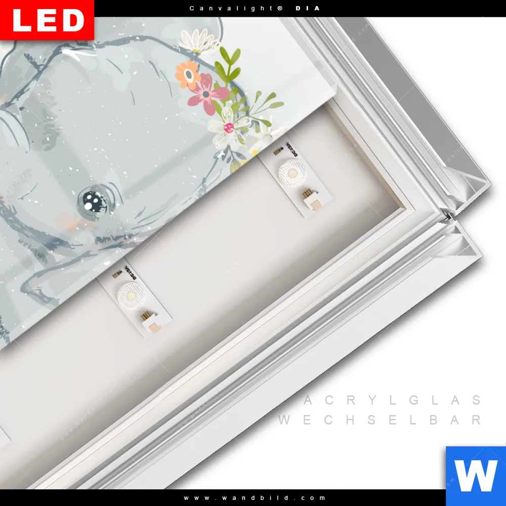 LED-Glasbild mit austauschbarem Acrylglas-Druck (Wechselbild)