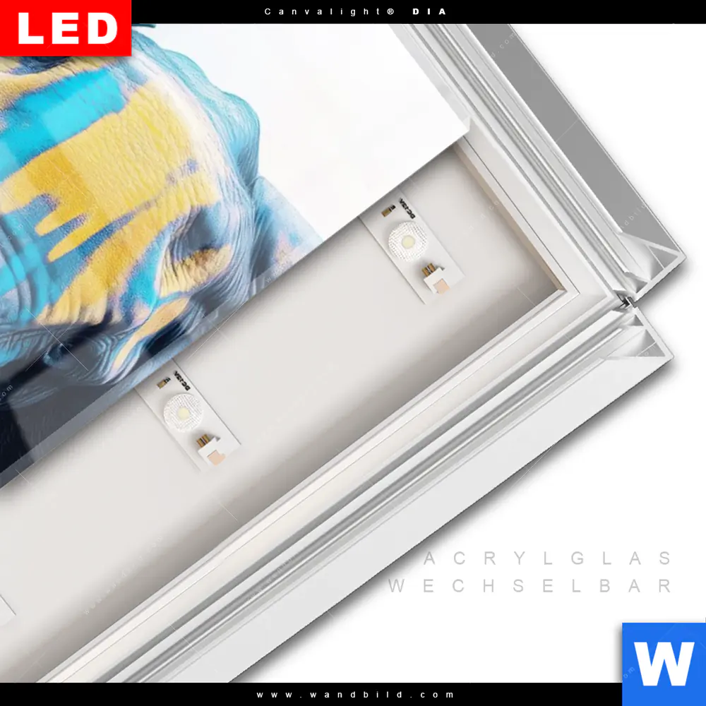 LED-Glasbild mit austauschbarem Acrylglas-Druck (Wechselbild)