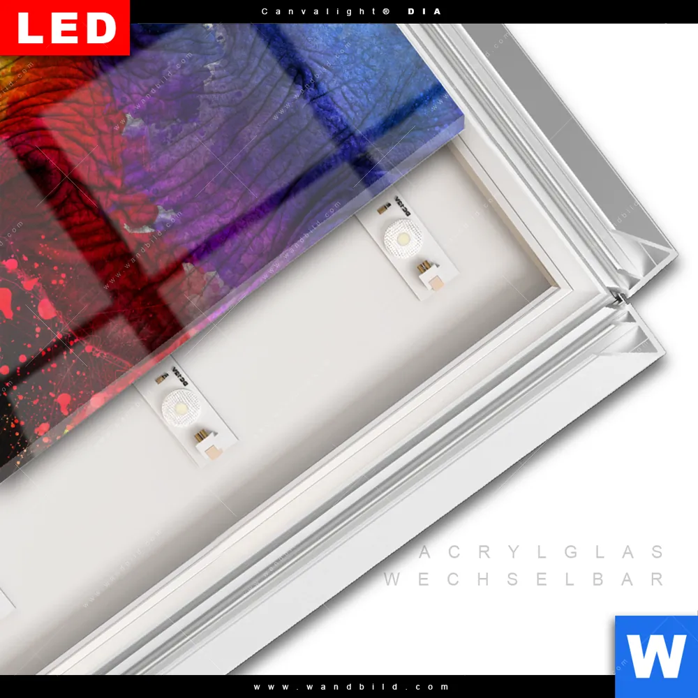 LED-Glasbild mit austauschbarem Acrylglas-Druck (Wechselbild)