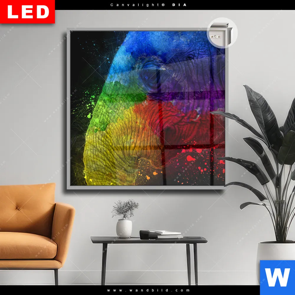 Canvalight® DIA Leuchtbild | Elefant Pop Art No.1 | Quadrat
