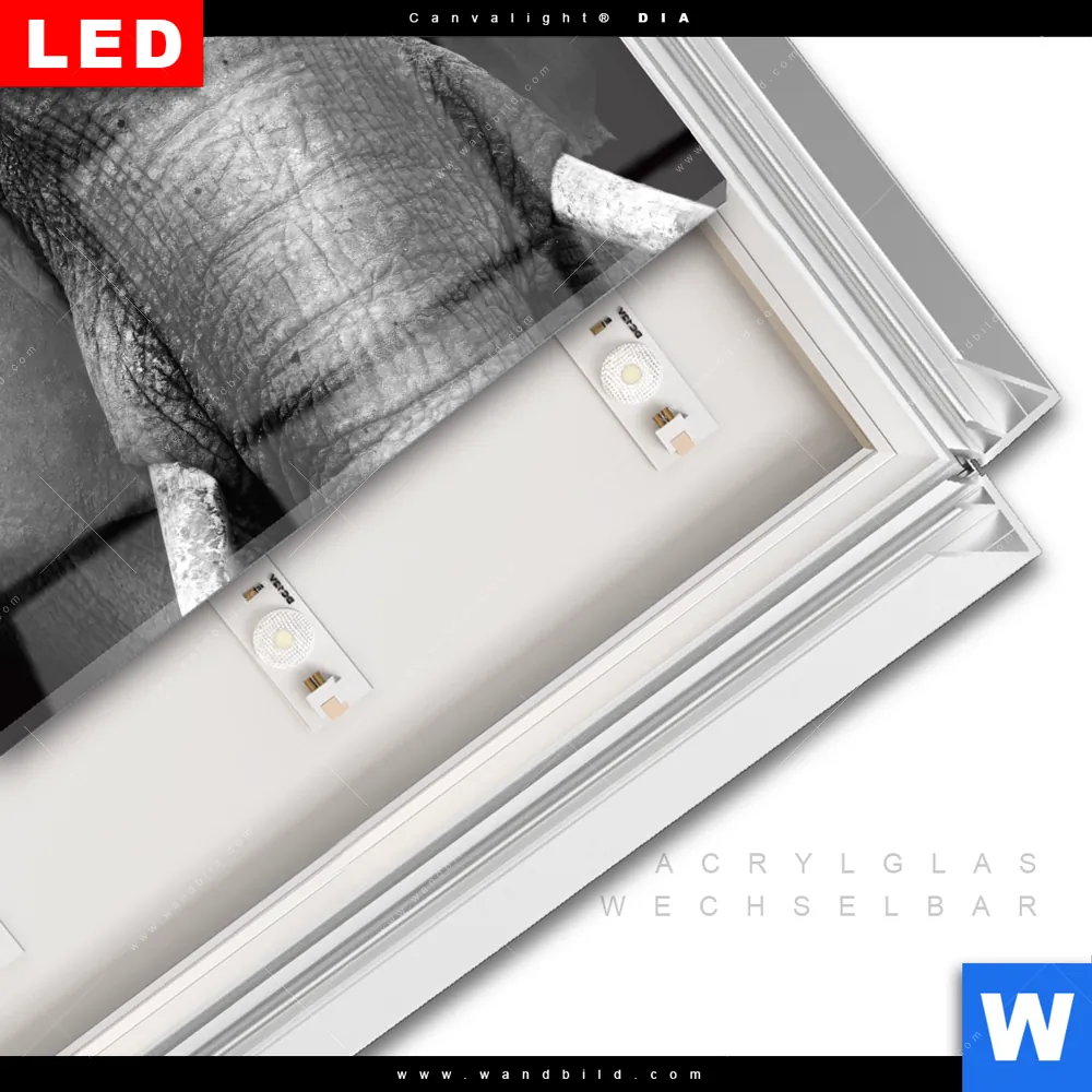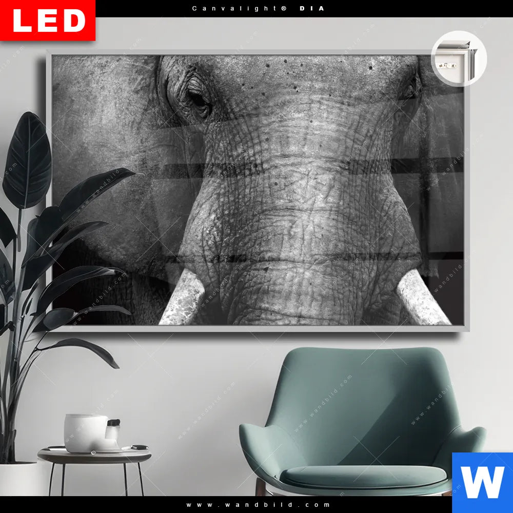 Canvalight® DIA Leuchtbild | Elefant Schwarzweiß | Querformat