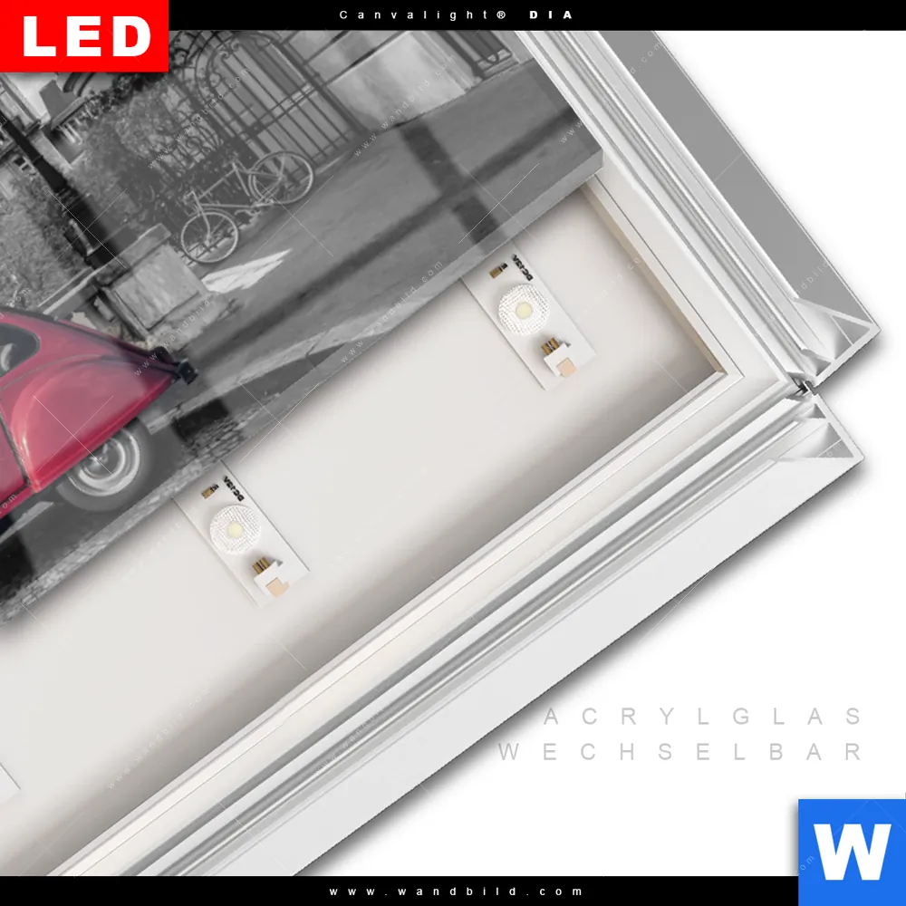 LED-Glasbild mit austauschbarem Acrylglas-Druck (Wechselbild)