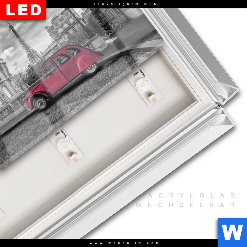 LED-Glasbild mit austauschbarem Acrylglas-Druck (Wechselbild)