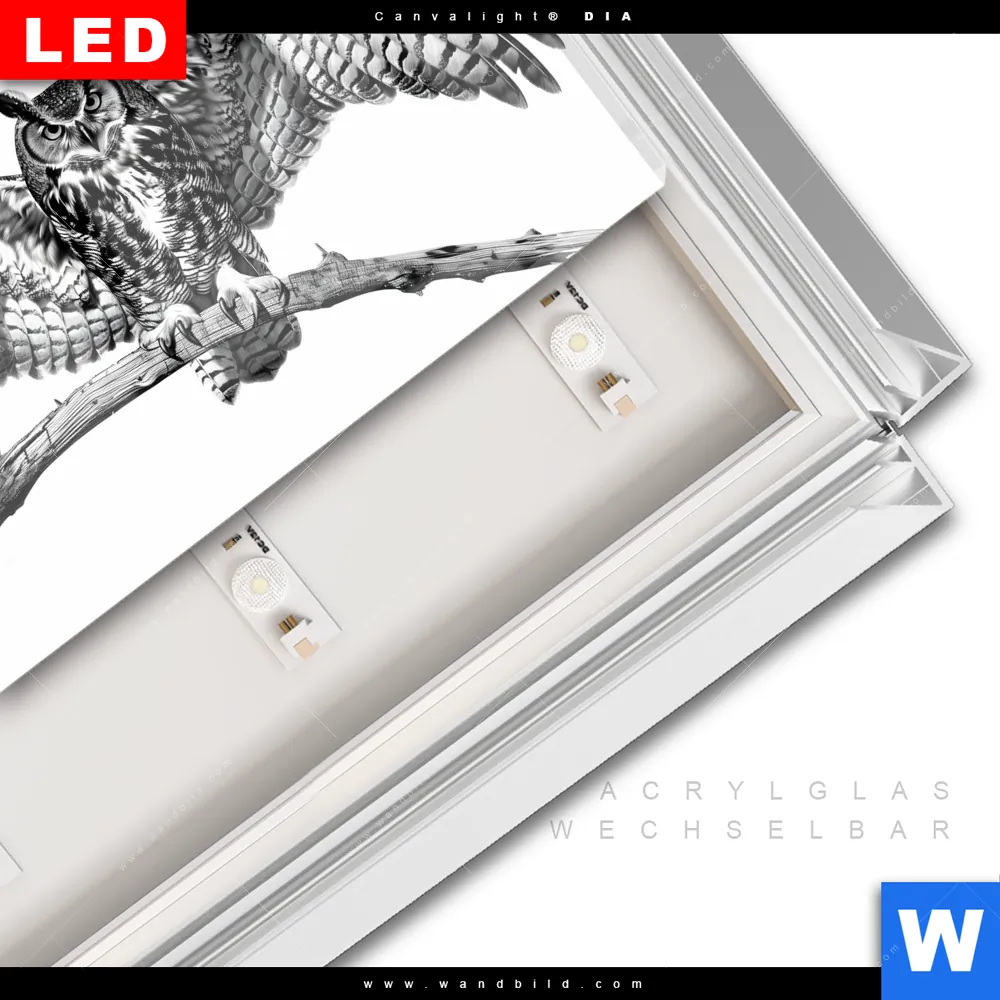 LED-Glasbild mit austauschbarem Acrylglas-Druck (Wechselbild)