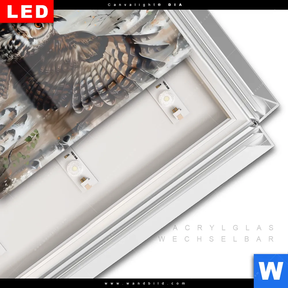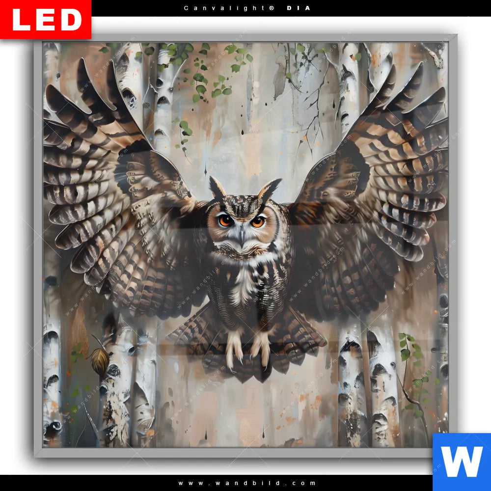 Canvalight® DIA Leuchtbild | Eule im Birkenwald | Quadrat