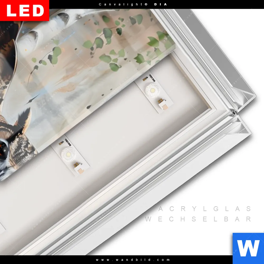LED-Glasbild mit austauschbarem Acrylglas-Druck (Wechselbild)