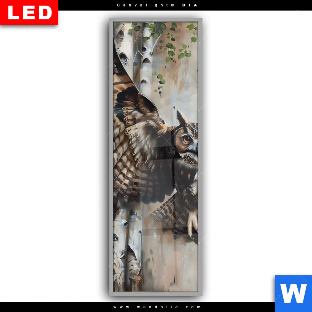 Canvalight® DIA Leuchtbild | Eule im Birkenwald | Schmal