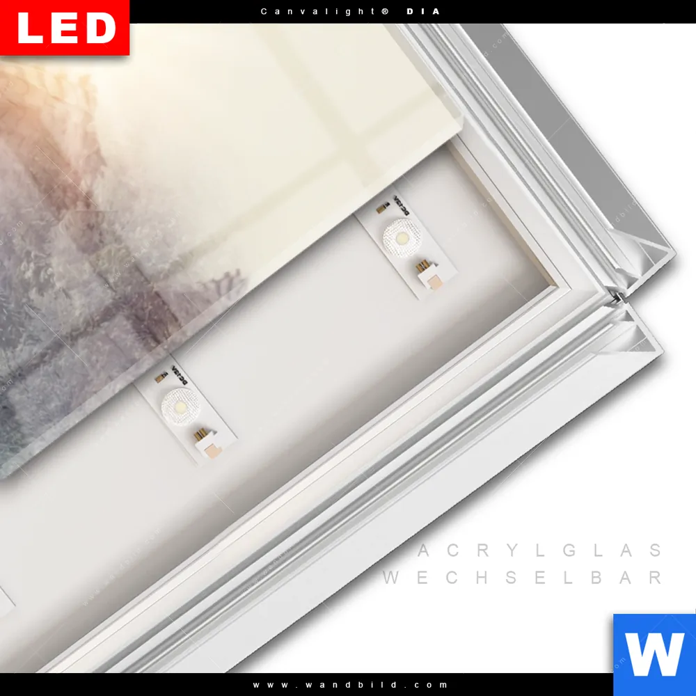 LED-Glasbild mit austauschbarem Acrylglas-Druck (Wechselbild)