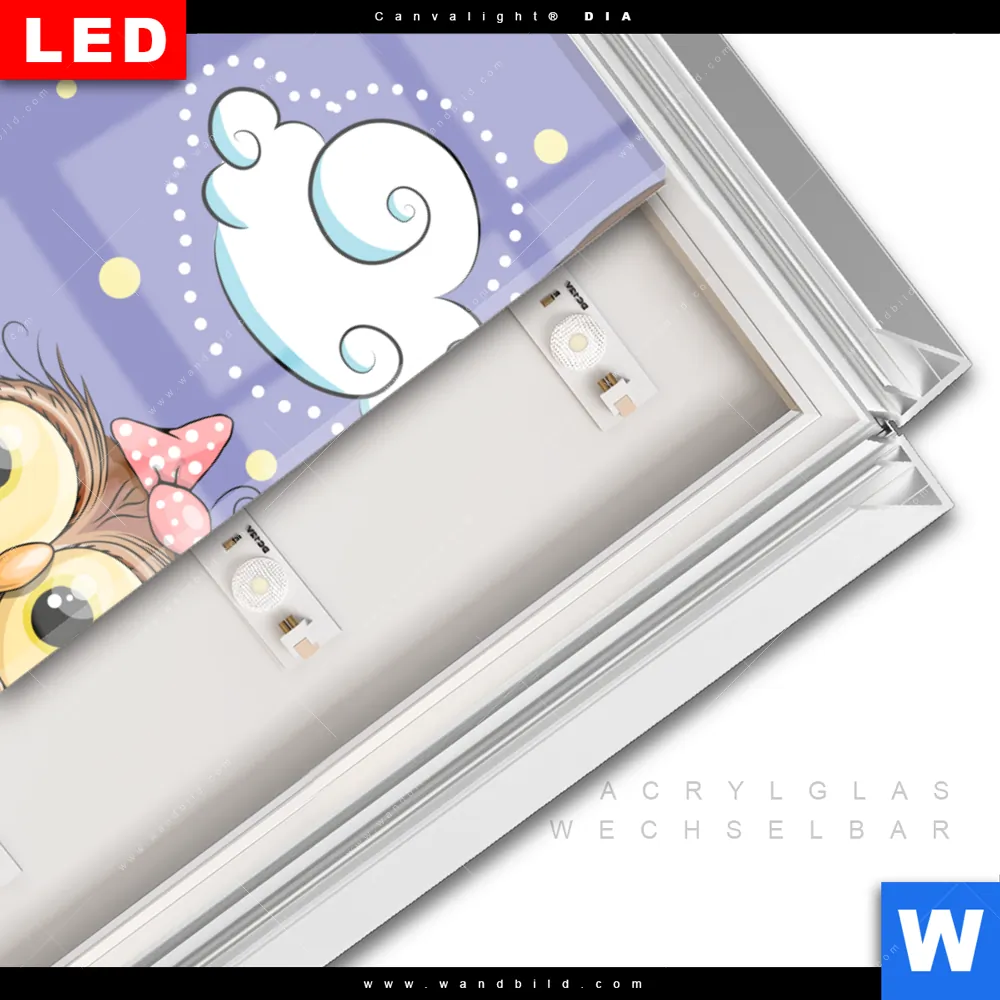 Canvalight® DIA Leuchtbild | Eulenfamilie | Hochformat