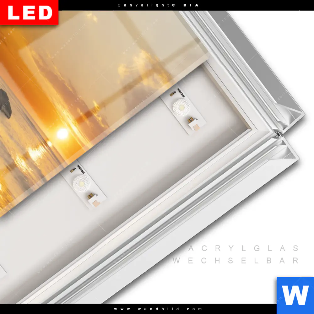 LED-Glasbild mit austauschbarem Acrylglas-Druck (Wechselbild)