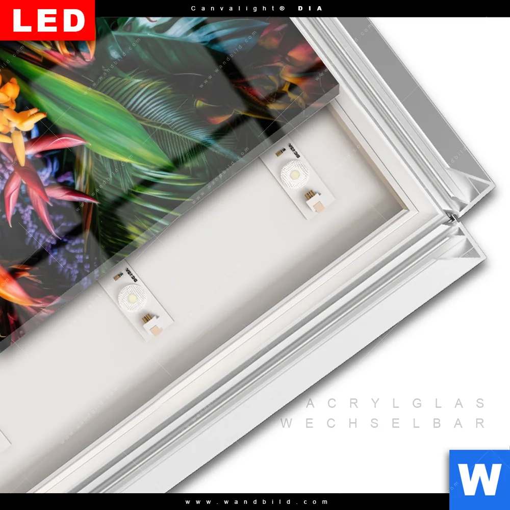 LED-Glasbild mit austauschbarem Acrylglas-Druck (Wechselbild)