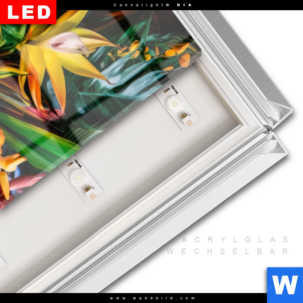 LED-Glasbild mit austauschbarem Acrylglas-Druck (Wechselbild)