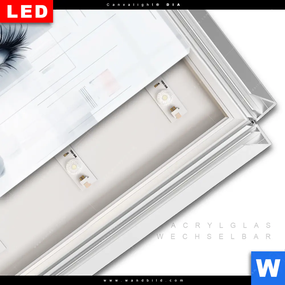 LED-Glasbild mit austauschbarem Acrylglas-Druck (Wechselbild)