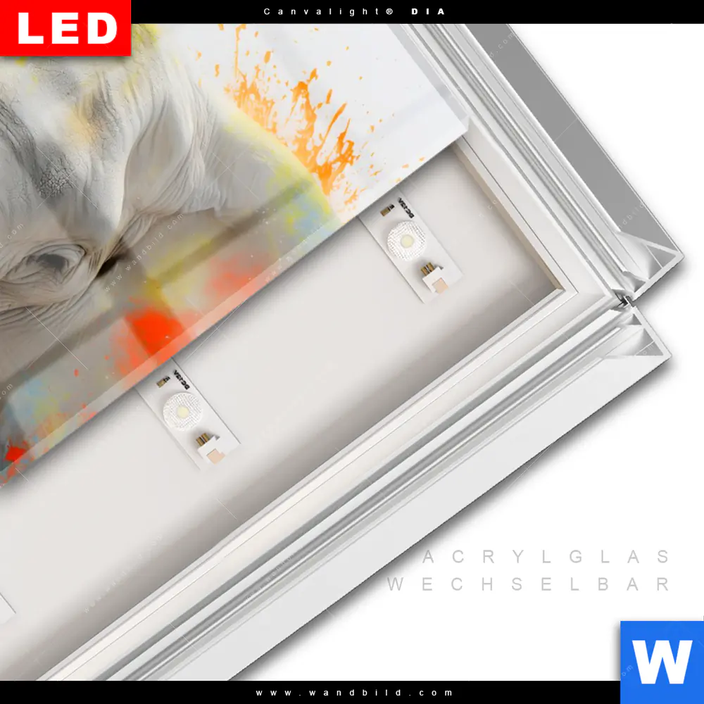Canvalight® DIA Leuchtbild | Farbenexplosion mit Elefant | Hochformat
