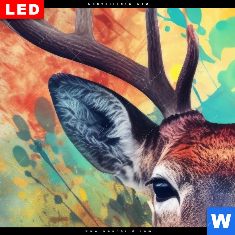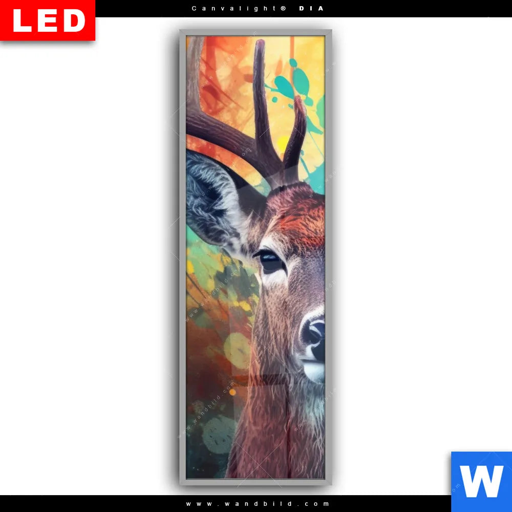 Canvalight® DIA Leuchtbild | Farbenfrohes Hirschporträt | Schmal