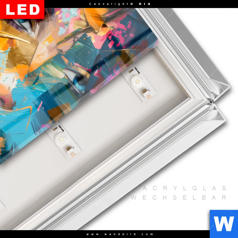 LED-Glasbild mit austauschbarem Acrylglas-Druck (Wechselbild)