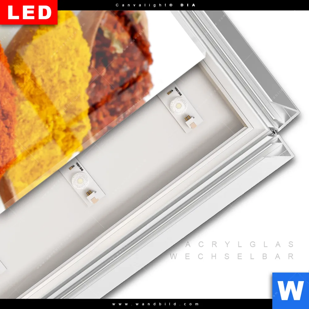 LED-Glasbild mit austauschbarem Acrylglas-Druck (Wechselbild)