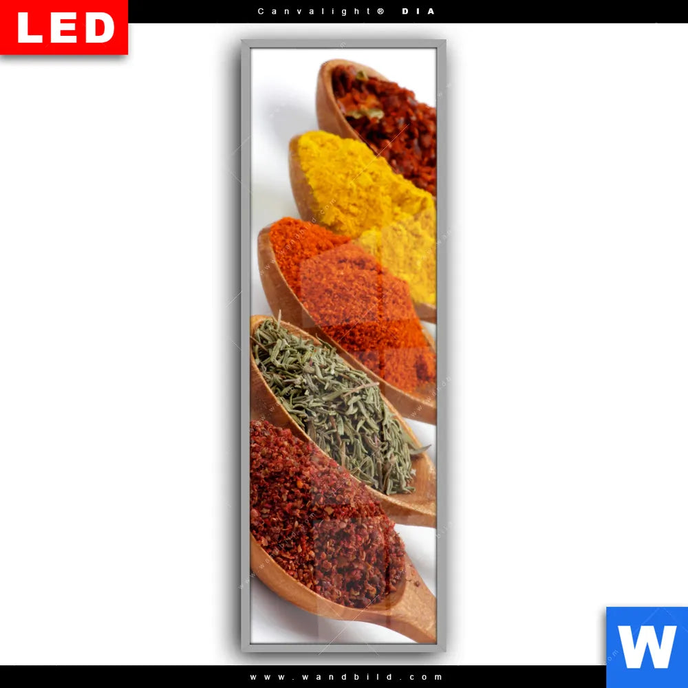 Canvalight® DIA Leuchtbild | Farbige Gewürze auf Holzlöffel | Schmal