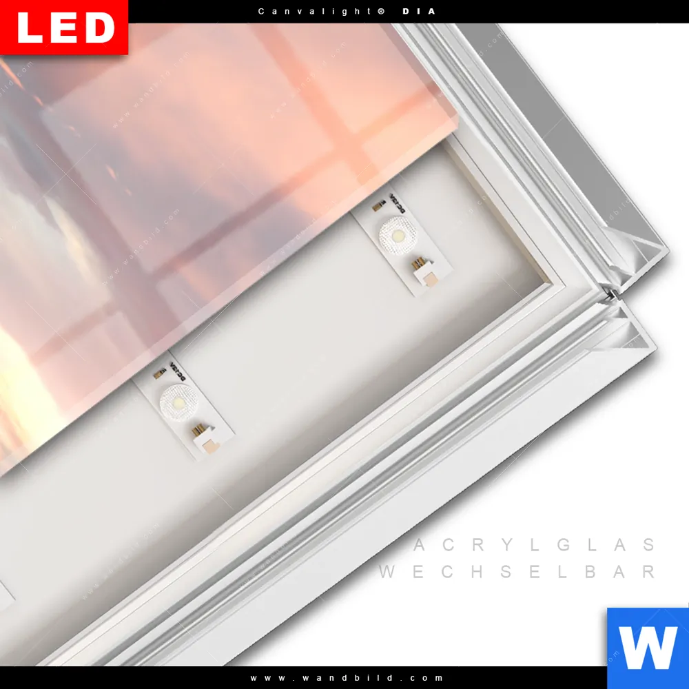 LED-Glasbild mit austauschbarem Acrylglas-Druck (Wechselbild)