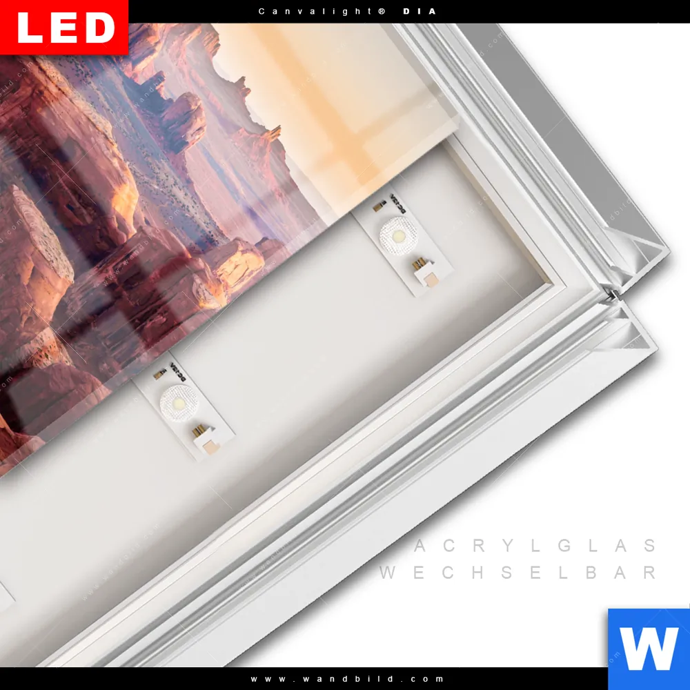 LED-Glasbild mit austauschbarem Acrylglas-Druck (Wechselbild)