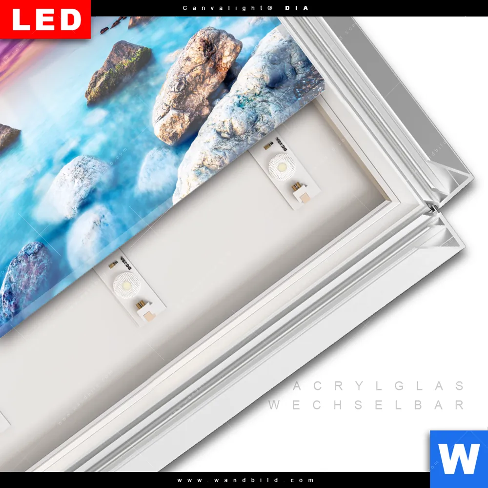 LED-Glasbild mit austauschbarem Acrylglas-Druck (Wechselbild)