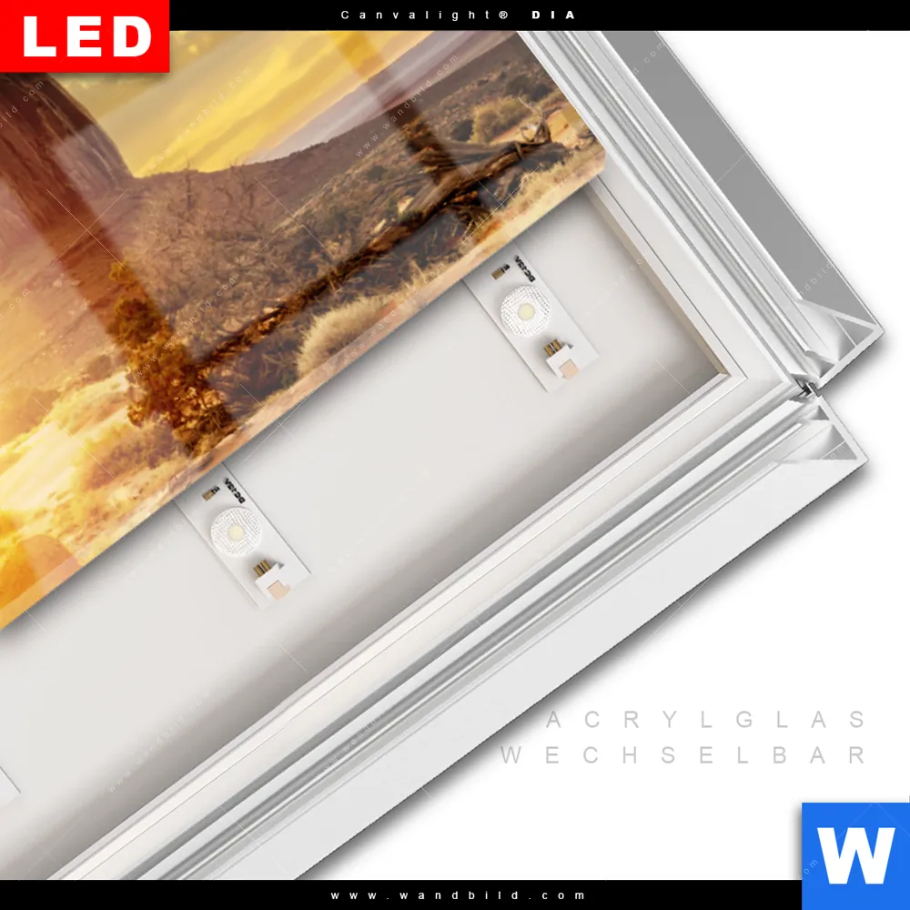 LED-Glasbild mit austauschbarem Acrylglas-Druck (Wechselbild)