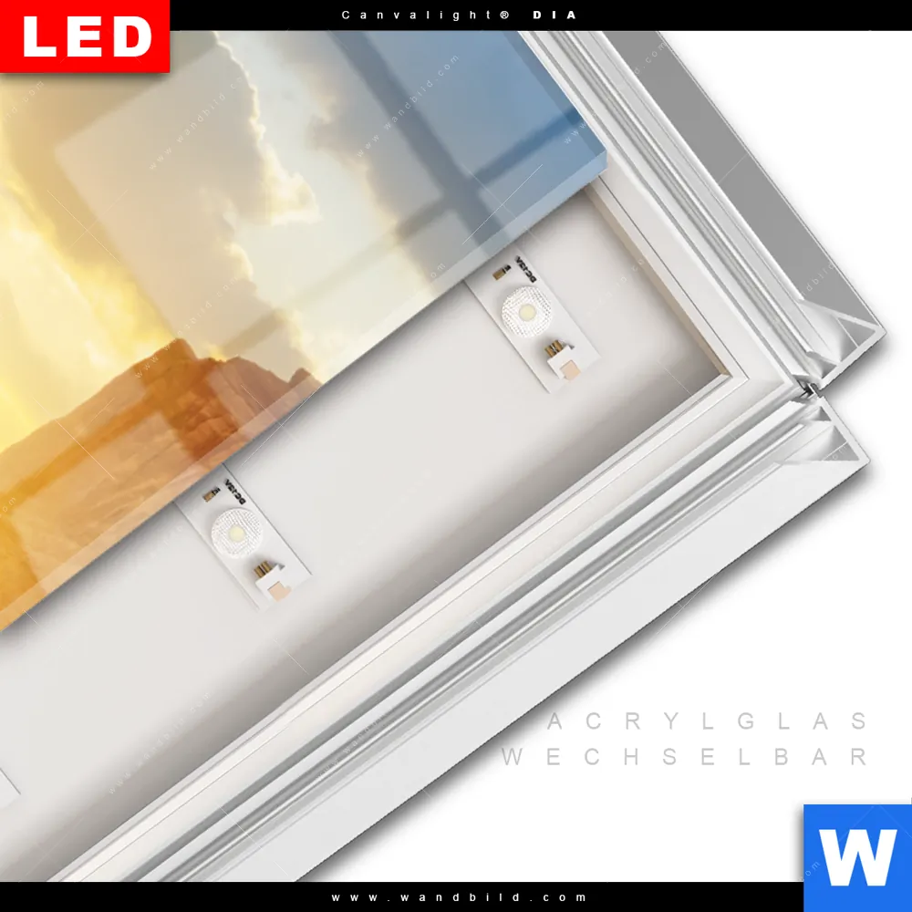 LED-Glasbild mit austauschbarem Acrylglas-Druck (Wechselbild)