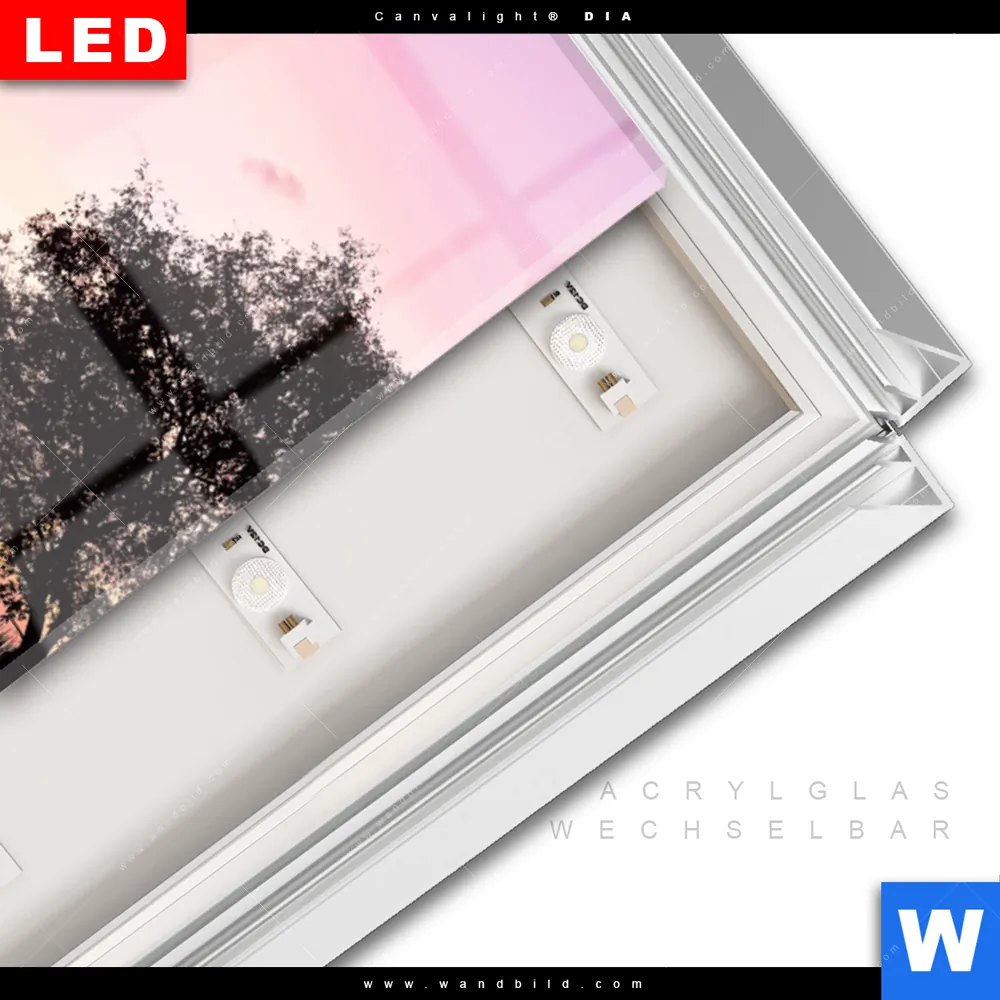 LED-Glasbild mit austauschbarem Acrylglas-Druck (Wechselbild)