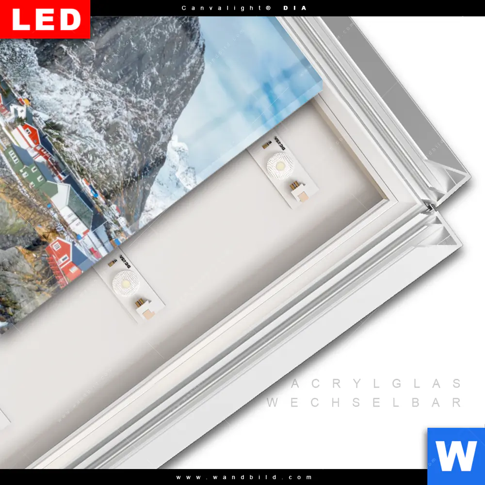 LED | Wechselrahmen-System | Acrylglas-Wechselbilder | DIA-Klapprahmen-Funktion
